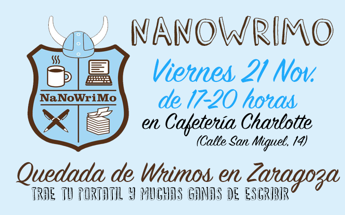El viernes... El viernes es mi cumpleaños, pero además de envejecer y de entregar miles de cosas a las editoras que me azuzan elegantemente, aún me dará tiempo por la tarde a leer un microrrelato que escribí para las Jornadas #ViolenciaMachista que se celebrarán en la Facultad de Ciencias Sociales y para salir pitando a la cafetería Charlotte de la calle San Miguel, a la quedada Nanowrimo. Fíjense si tienen oportunidades para felicitarme en persona.